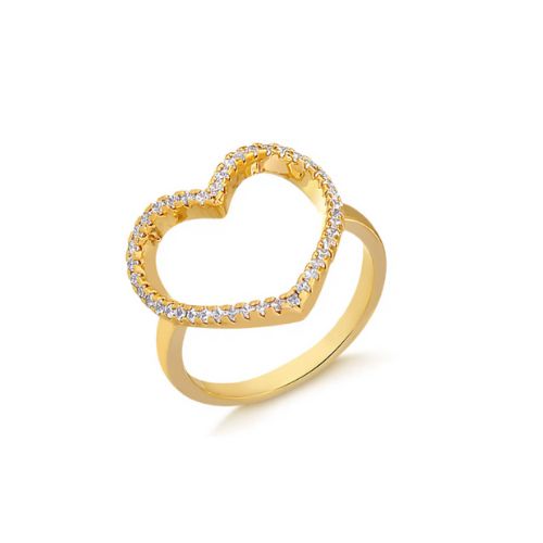 Anel Banhado A Ouro 18K,Coração Vazado Cravejado Com Zircônias.