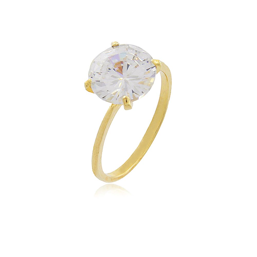 Anel Banhado A Ouro 18K, Anel Solitário Com Zircônia Tamanho 10Mm.