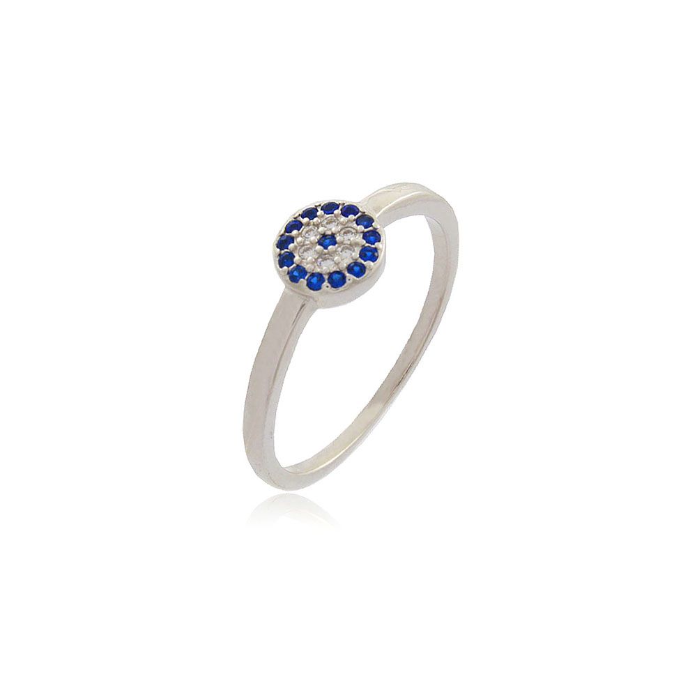 Anel Prata 925 Botão Cravejado Com Zircônias Azuis E Brancas.
