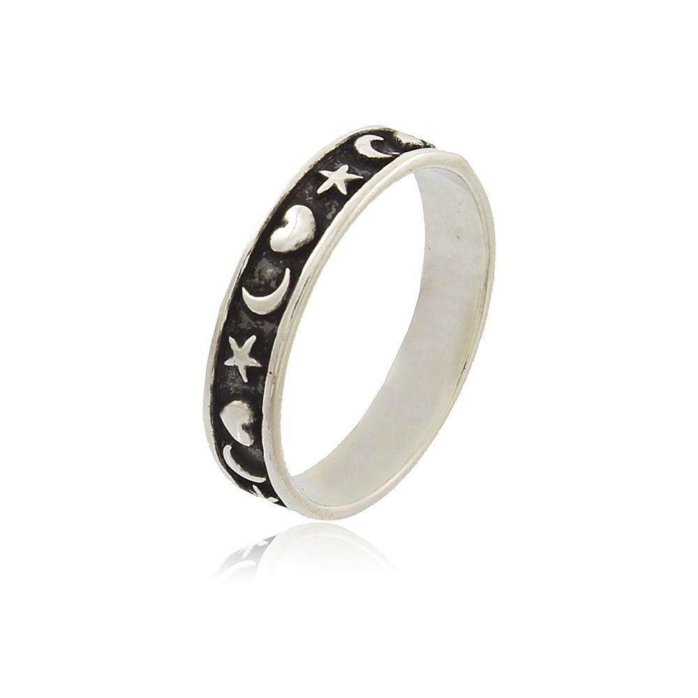 Anel Prata 925 Lua Com Estrelas E Corações.