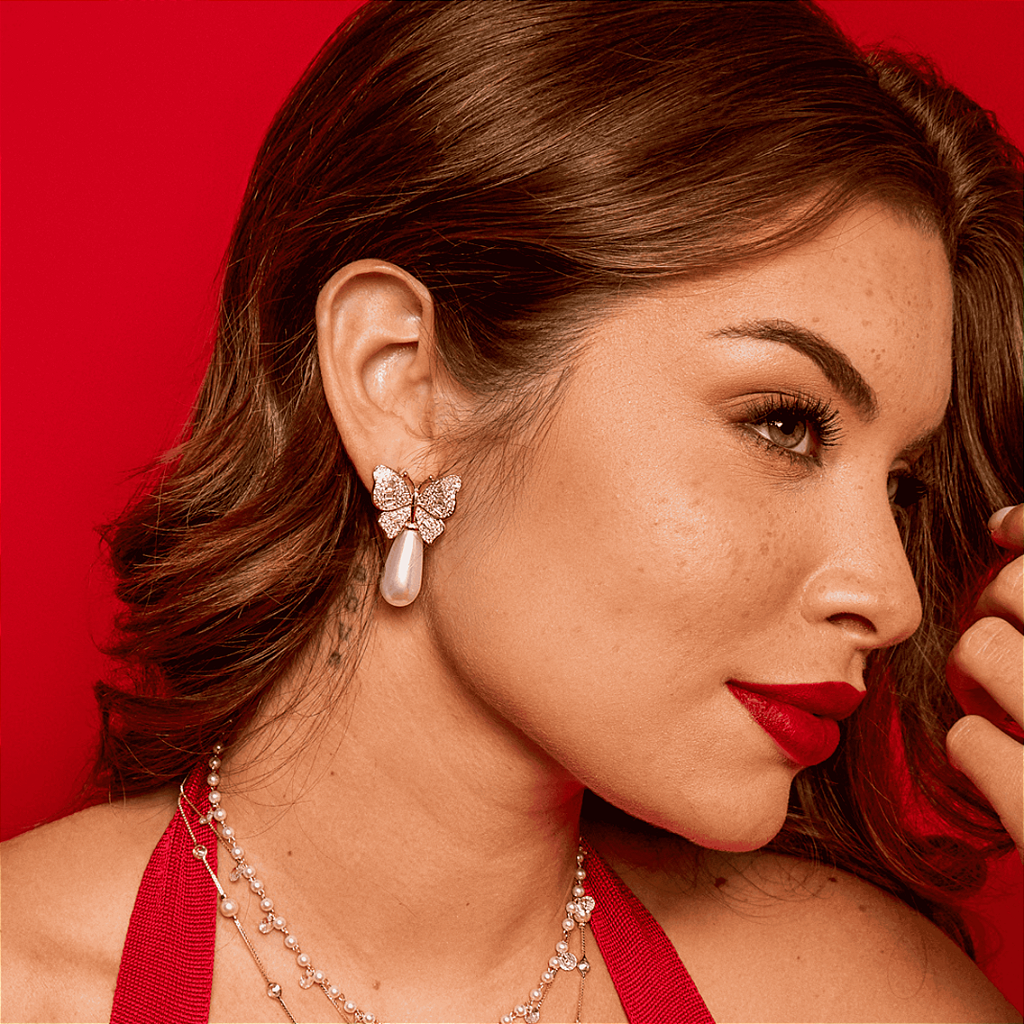 Um toque de poesia e sofisticação. Esse brinco folheado combina a leveza da borboleta com o brilho das zircônias e a delicadeza da pérola em formato de gota. Ideal para quem ama peças românticas e cheias de presença.