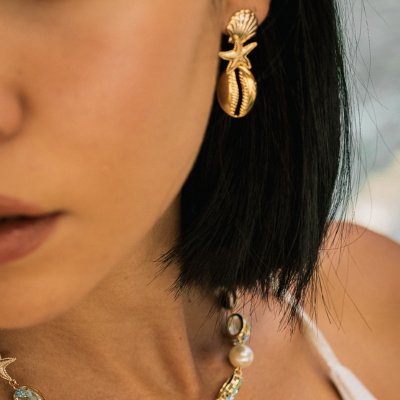 Brinco Banhado Fundo do Mar com Concha, Estrela e Búzios lisos, perfeitos para compor em qualquer estação ✧✧✧
