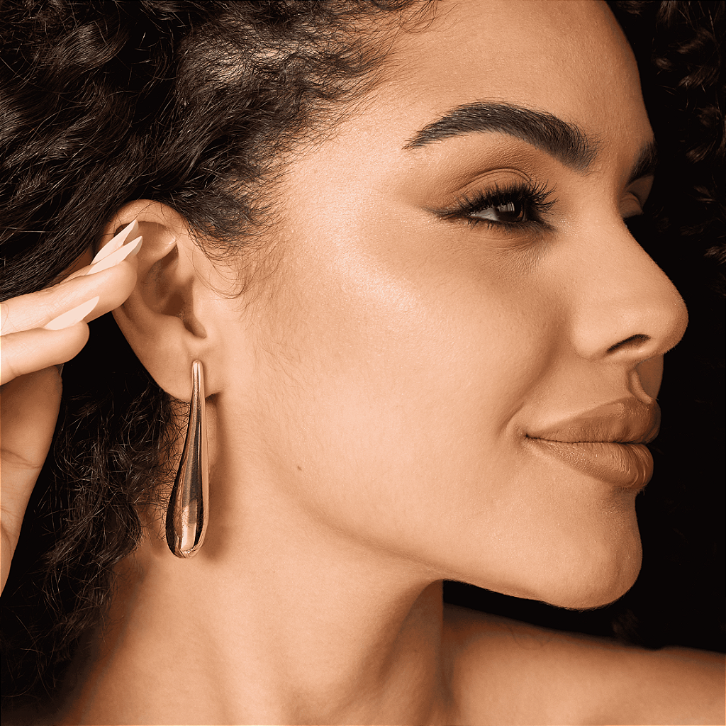 Minimalista e marcante na medida. Esse brinco banhado possui formato de gota alongada com leve volume central, trazendo elegância orgânica e caimento leve. Uma peça versátil, perfeita para compor produções sofisticadas com um toque de design.