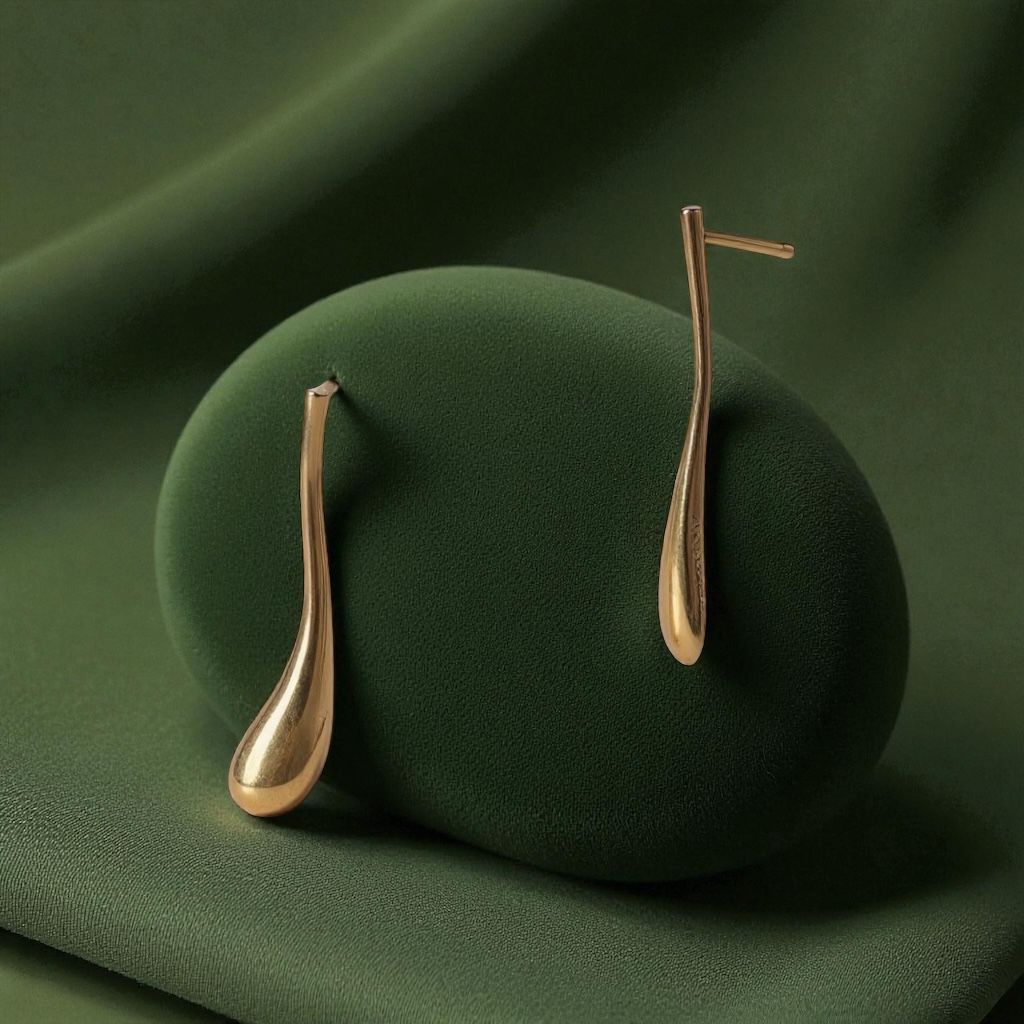 Elegante, orgânico e moderno. Esse brinco banhado a ouro 18K apresenta um design de gota alongada com acabamento polido, ideal para quem ama peças minimalistas com personalidade. Uma joia leve e sofisticada, perfeita para looks casuais ou mais elaborados.
