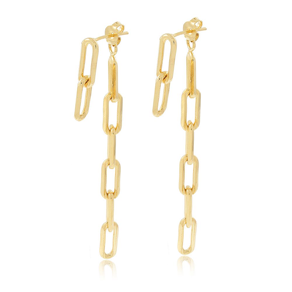 Brinco Banhado Ouro 18k Corrente Cadeado com Detalhe Tarracha de Corrente Diferenciada.