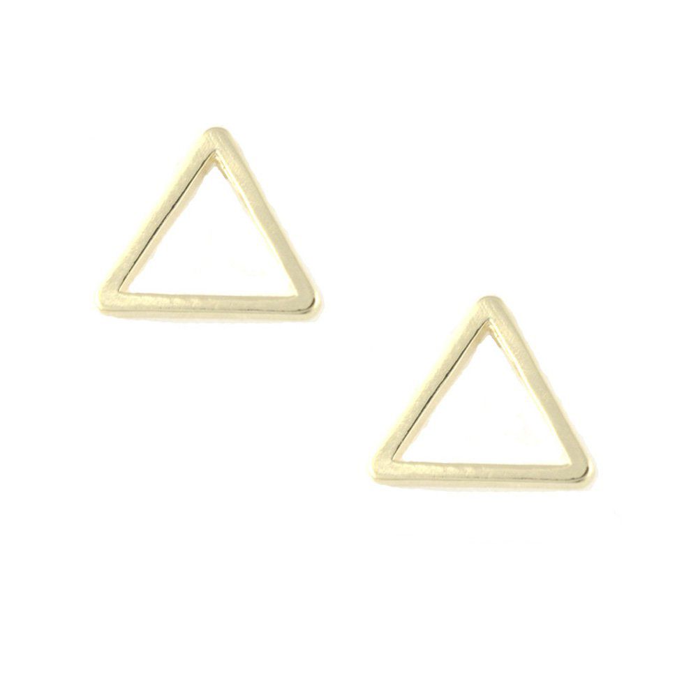 Brinco Banhado A Ouro 18K, Triângulo Tamanho Médio Vazado.