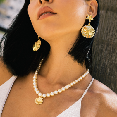 Colar Banhado Fundo do Mar todo de Pérolas com um lindo pingente de Concha para dar aquele detalhe bem praiano chic ✧✧✧