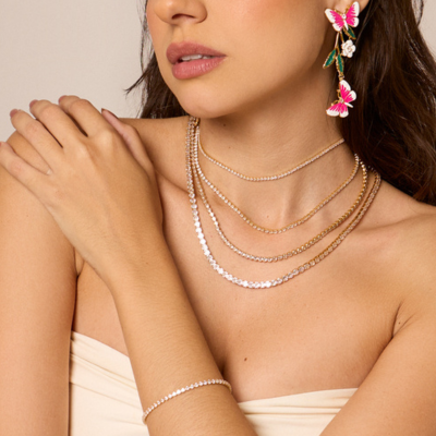 Colar Banhado Riviera em bolinha embutida, com cravação Italiana, e uma frente fixa para evitar que se vire, dando um belissimo acabamento e brilho único que só a clássica riviera pode oferecer ✧✧✧