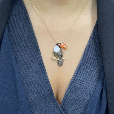 Colar Banhado Tucano Resinado, todo colorido e com incríveis texturas. A qualidade das nossas peças Banhadas com até 10 camadas de Ouro, além da resina de altíssima qualidade, dando um lindo acabamento e modernidade a peça.