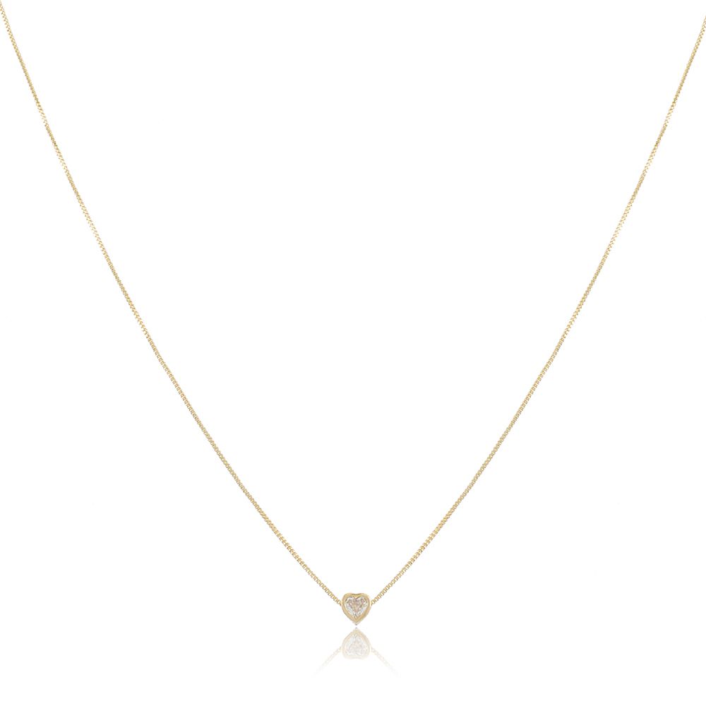 Colar Banhado A Ouro 18K, Ponto De Luz Zircônia Em Forma De Coração
