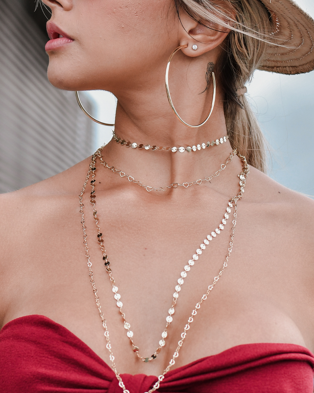 Colar longo composto por delicadas chapinhas lisas distribuídas ao longo da corrente, criando um efeito luminoso e sofisticado a cada movimento. A peça possui acabamento polido e leveza ideal para composições modernas, sendo banhada a Ouro 18k para garantir brilho e durabilidade.