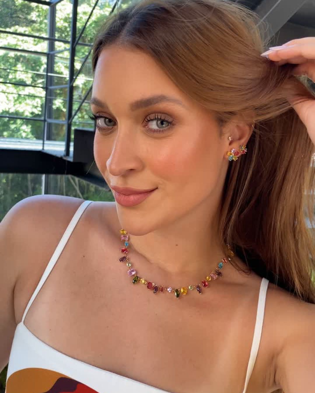 Vibrante, ousado e cheio de personalidade. Esse colar banhado é composto por pedras coloridas em cortes geométricos, todas cravejadas com zircônias que iluminam e destacam a peça. Uma explosão de cor e brilho para transformar qualquer look em algo marcante.