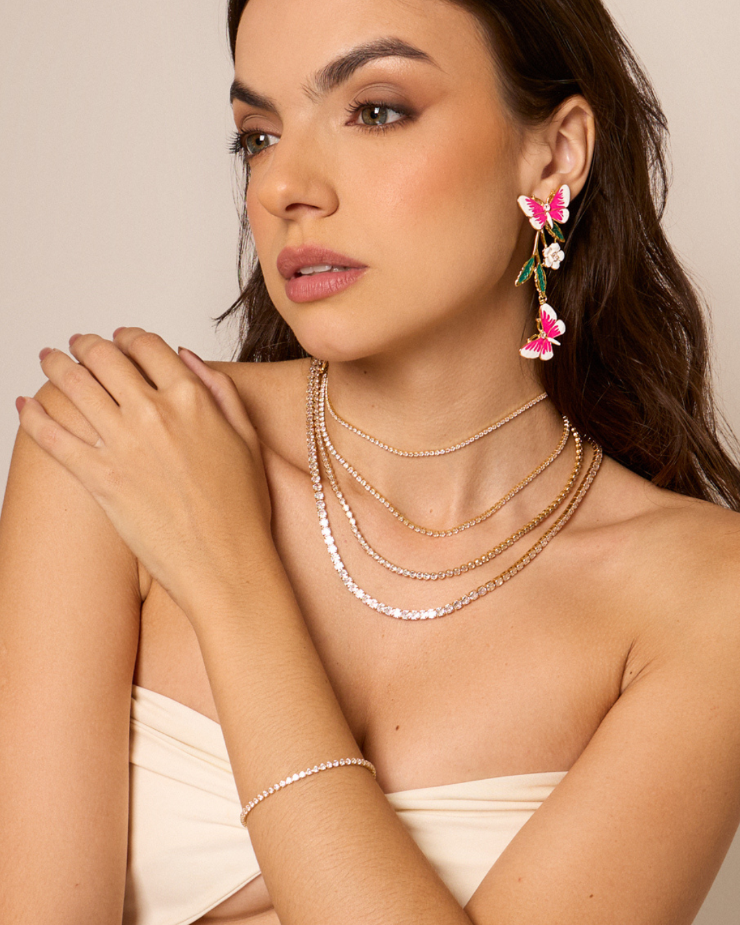 Produzido com banho premium em Ouro 18k, essa peça entrega um brilho único e refinado, característico das rivieras mais clássicas. O comprimento de 45cm proporciona um caimento perfeito, tornando-o uma joia versátil, ideal tanto para composições elegantes quanto para elevar produções do dia a dia com delicadeza e luxo sutil.