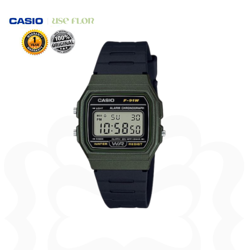 Relógio Casio Pulseira Borracha Caixa Verde F-91WM-3A