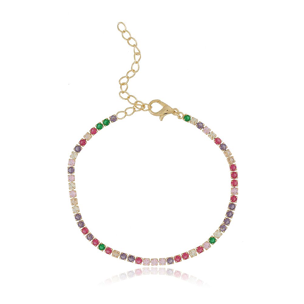 Pulseira Banhada A Ouro 18K, Riveira Média Com Pedras Coloridas.