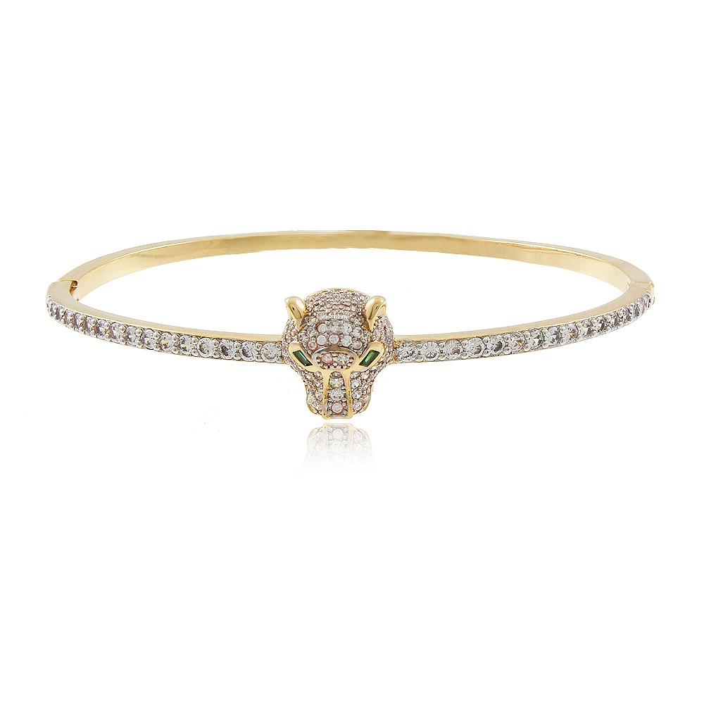 Pulseira Bracelete Banhado Pantera Face Olhos Verdes Zirconia,