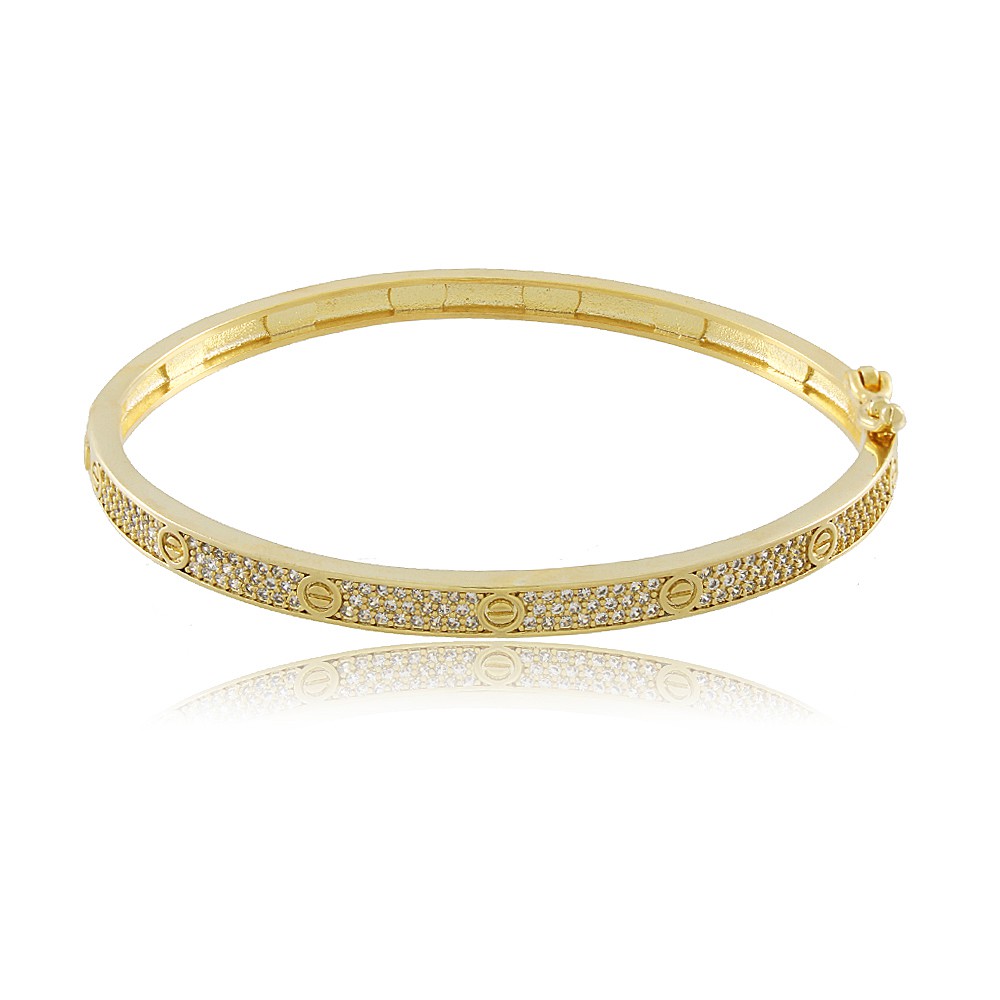 Pulseira Bracelete Banhado Quadrado com Zircônia Detalhe Liso Frente.