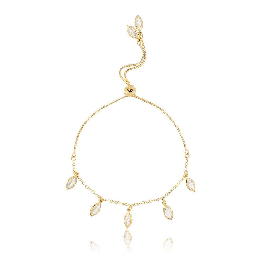 Pulseira Banhada Ouro 18k Dourada com Gotas de Pedrinhas e Fecho Regulável.