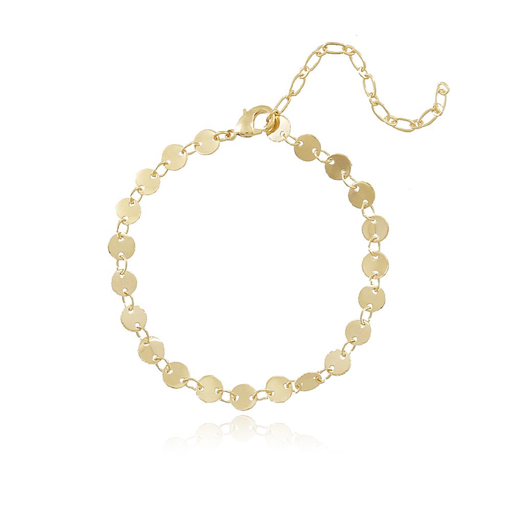 Pulseira Banhada A Ouro 18K, Elo Com Chapinhas Lisas