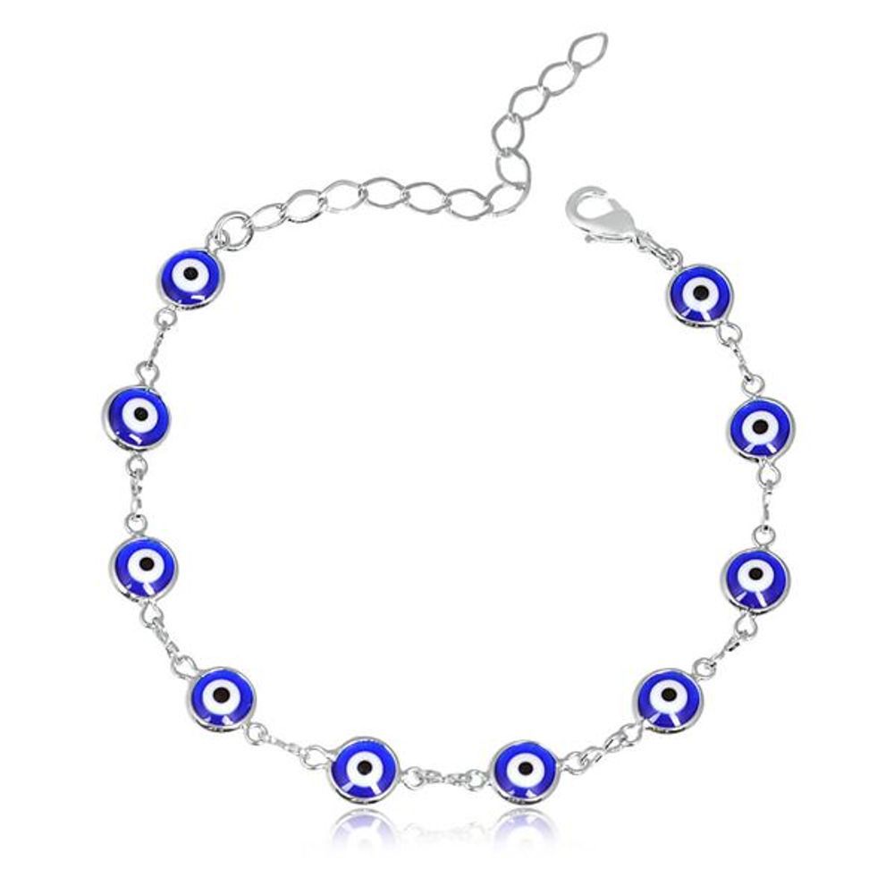 Pulseira Banhado A Ouro 18K, Com Banho De Ródio Branco E Olho Grego Azul Escuro Por Toda A Peça.