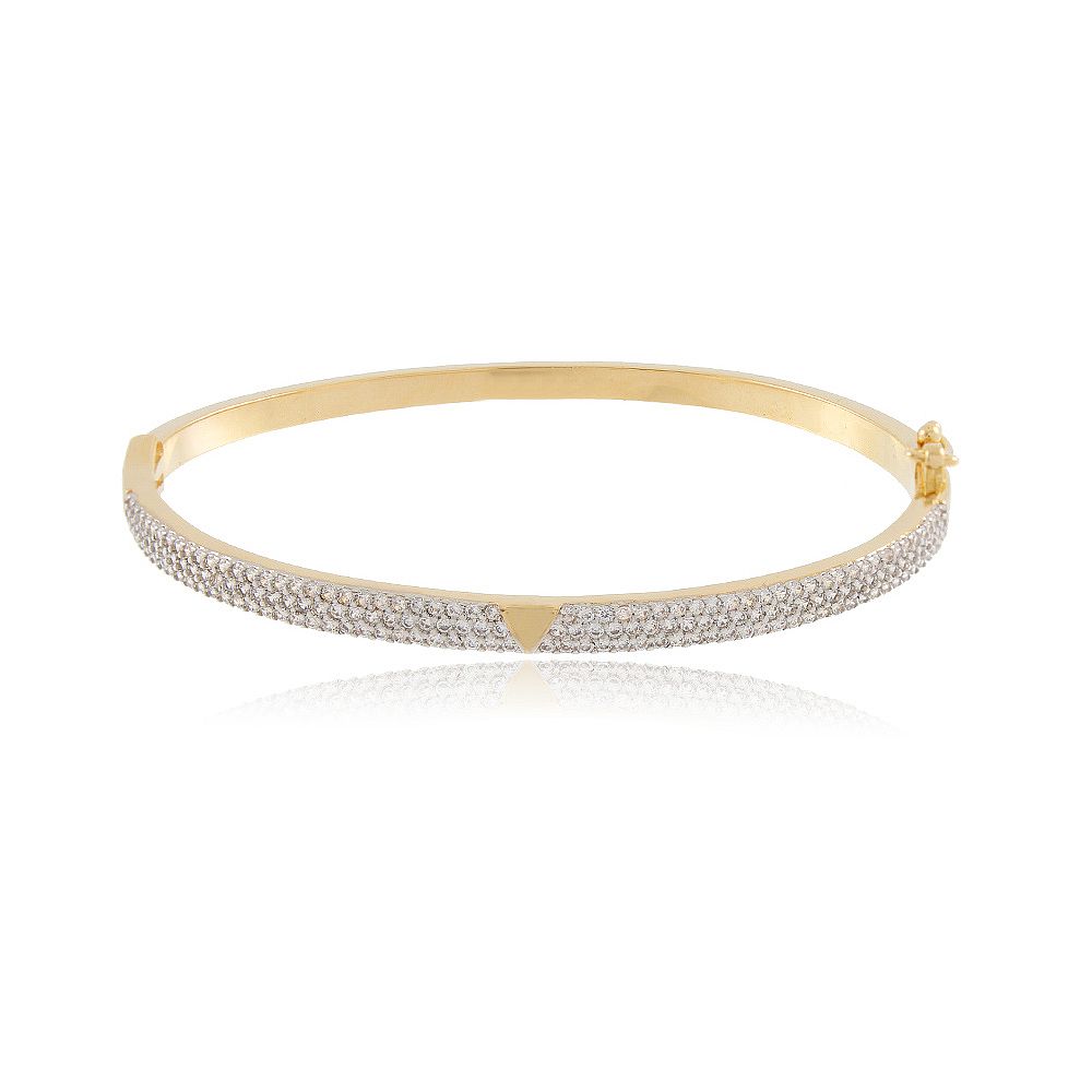 Pulseira Bracelete Banhado Meia Cana de Zircônia com Triângulo Liso.