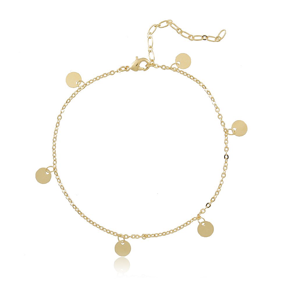 Tornozeleira Banhada A Ouro 18K, Correntinha Com Chapinhas Lisas